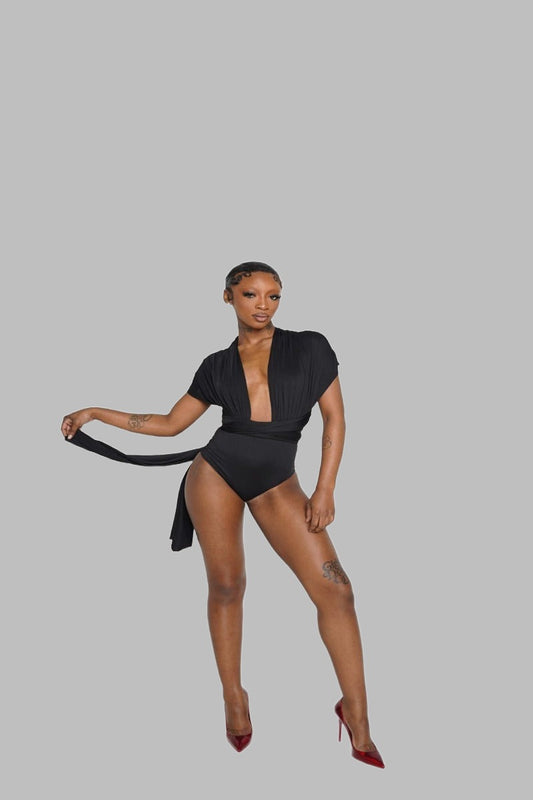 Catsuit de manga larga con cuello halter negro recortado Leah